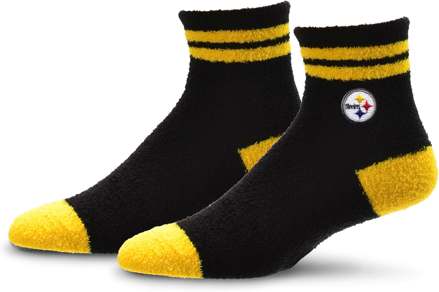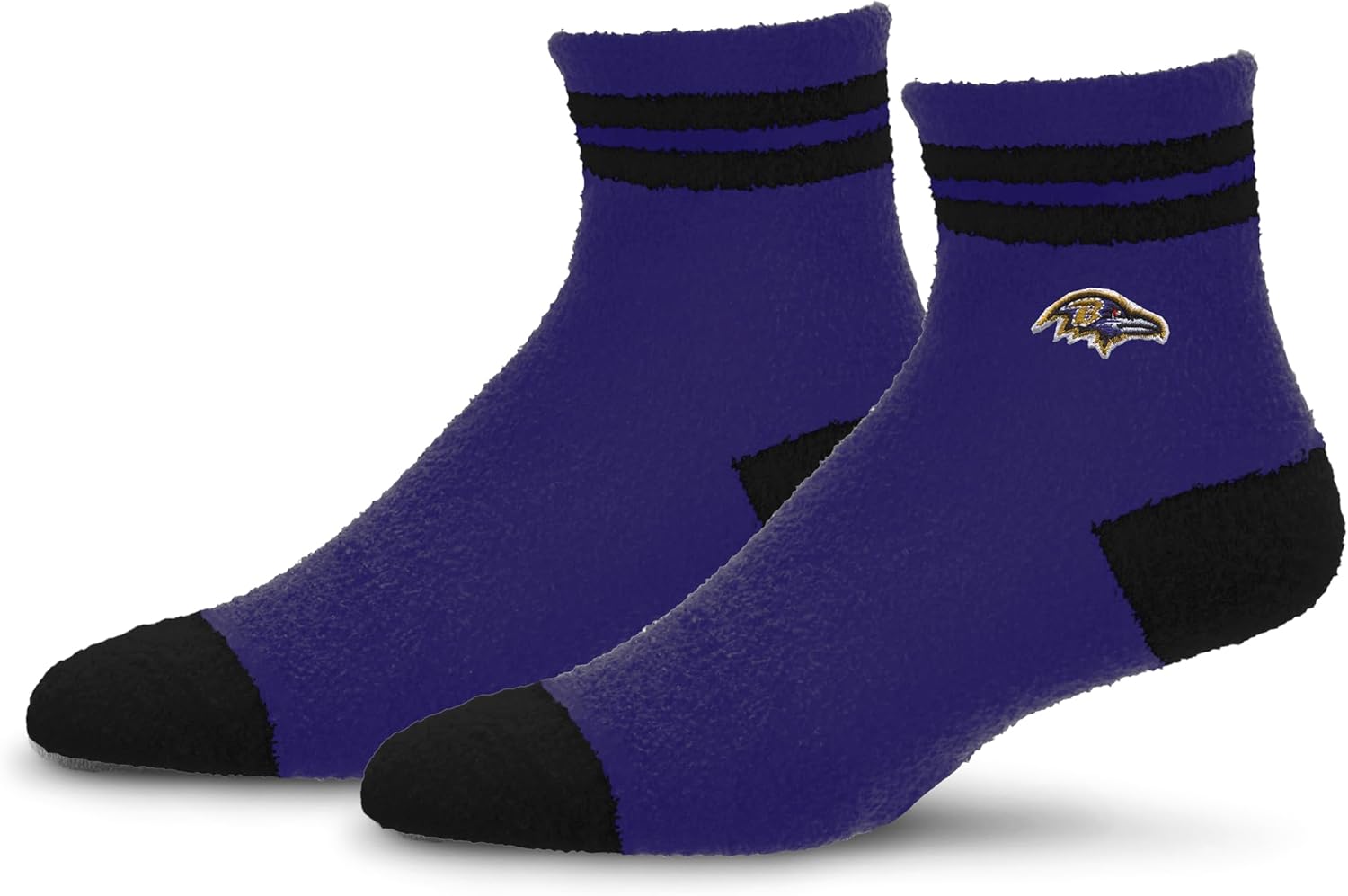Tell everyone you’re a fan with these Brand-New 2 Stripe Cozy socks. Featuring a taller ankle height with team color varsity stripes at the top and a full color embroidery on the leg. Makes a perfect gift for the fan in your life. They are a fashionable way to show your team pride from head to toe. Size youth, comfortably Fits the Fan Shoe size Youth 13, 1-5. Officially licensed with long lasting embroidered team logos, and colors, that won’t let you down! Fabric content: 98% Polyester, 2% Spandex. Machine washable, tumble dry low.
